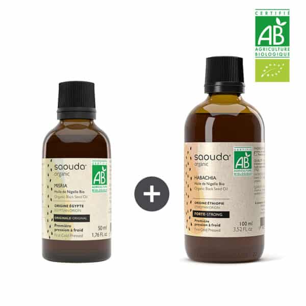 Découvrez la véritable huile de nigelle Bio certifiée AB biologique de la gamme Saouda.
