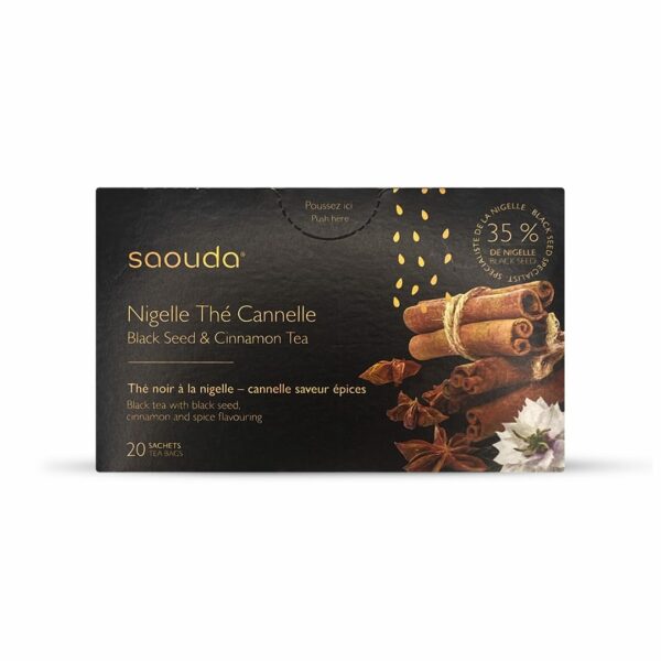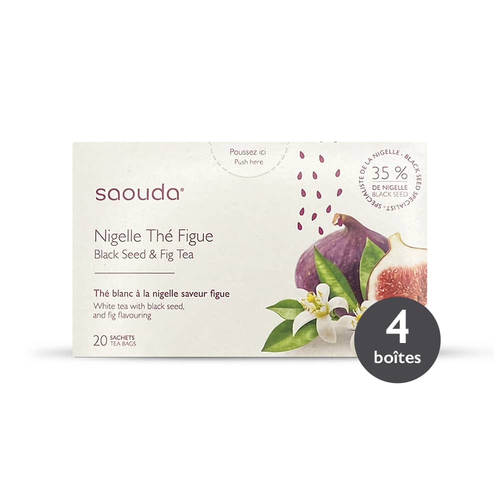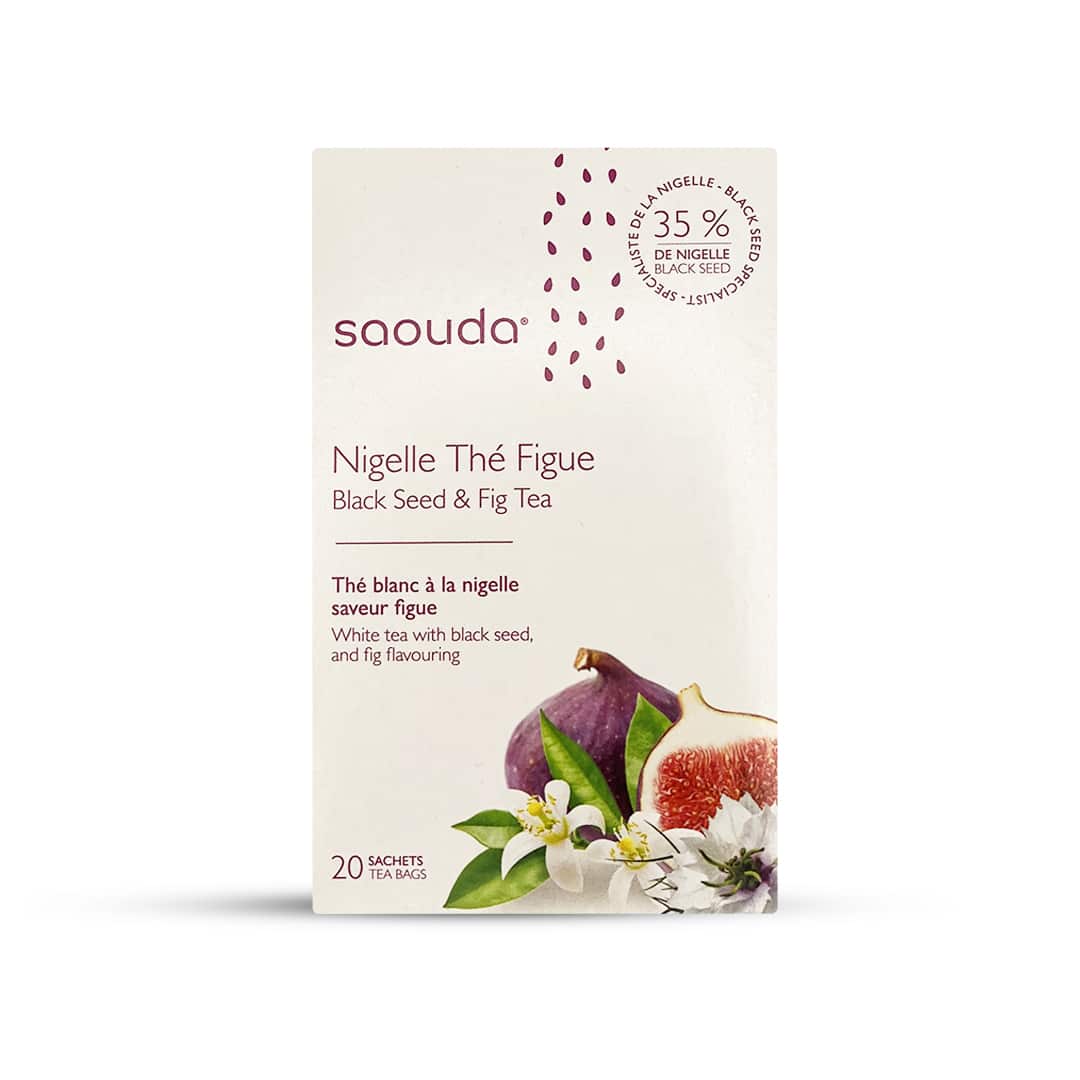 SAOUDA vous invite à découvrir les notes  rafraichissantes et subtiles du thé blanc, associées aux saveurs de la nigelle et au goût fruité de la figue, auxquelles se mêlent le doux parfum de la fleur d’oranger