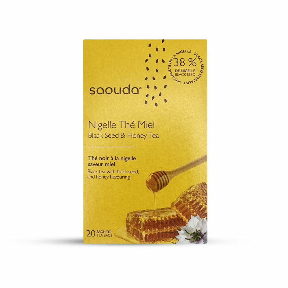 Composition : Thé noir, nigelle en graines (38%), miel de fleurs bio, arôme.